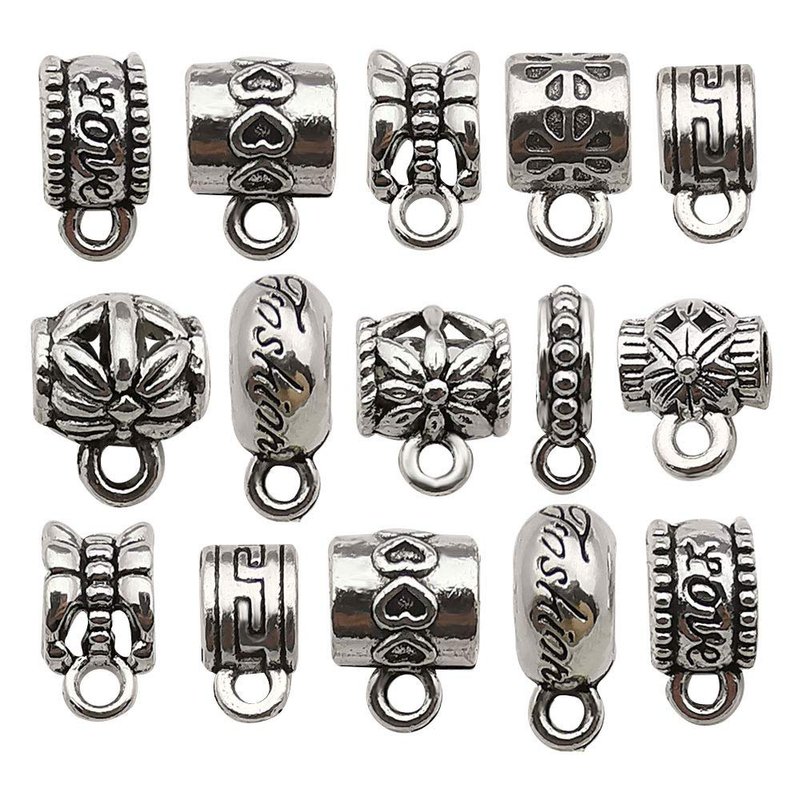 - antique silver Bail Tube Beads,Spacer Bead,Bail Beads,Bead Hanger Fit Charm European Bracelet Charms Pendant for Jewelry Making and Crafting , It's fashion, creative, full of special means, is a very useful accessory