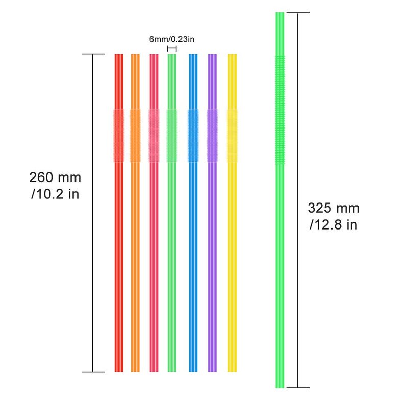 Specifications: About 100 pcs, each straw length of 10.2'',0.23'' diameter, to ensure that they can reach the high bottom of the cup.
