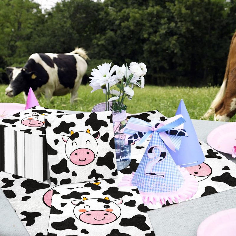 - 【Adorable Cow Theme Design】: This party napkin design with cow print and patterns. That would be a good addition to your cow-themed party, kid's birthday, baby shower, farm animal party, gender reveal, etc.
