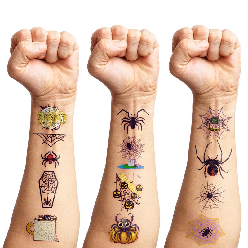 - 🕸️ FUN GIFT FOR SPIDER BIRTHDAY PARTY DECORATIONS SUPPLIES: Our Spider, Bat, Boo, Spider web and so on temporary tattoos for Spider party, Halloween carnival party cosplay dress up accessories, themed party, outdoor parties, other party events. SPIDER TATTOOS are also interesting and lovely gifts for your children. Complement your unique collection with a SPIDER tattoo!