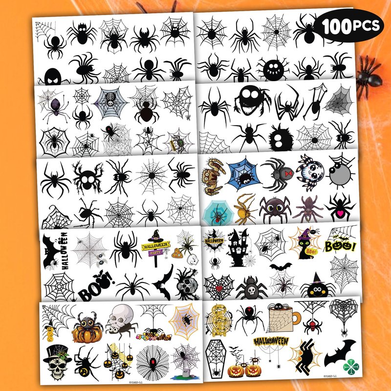 - 🕷️ TATTOOS FOR SPIDER THEMED DECORATION: SPIDER TATTOOS featuring 10 sheets with 100 pcs design for boys, girls, children, adult. Each sheet measures 6.1 * 3.1 inches. You can temporarily tattoo them on your body or objects such as phones, bottles, laptop…