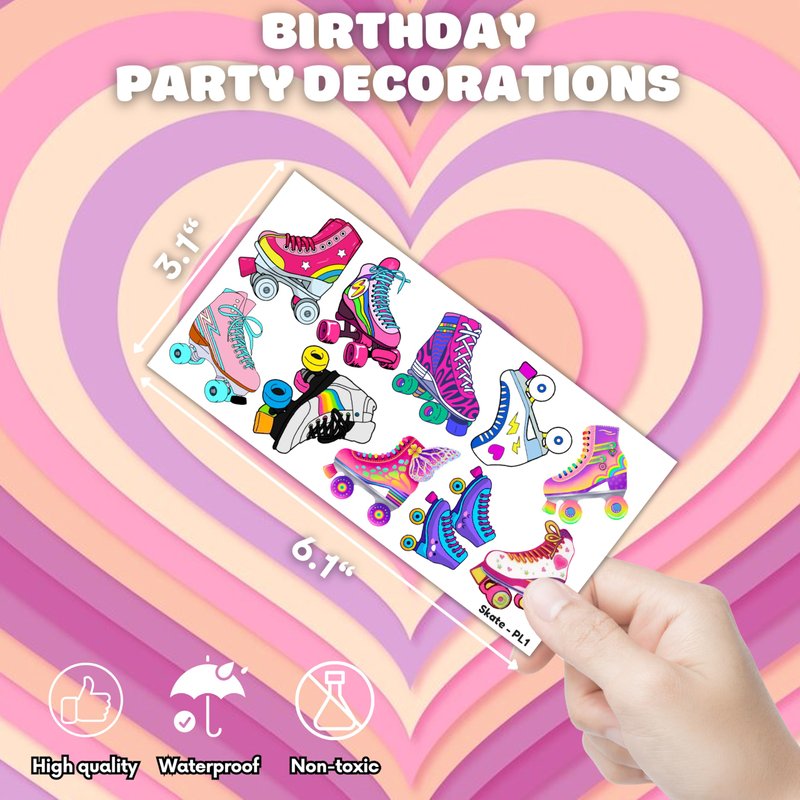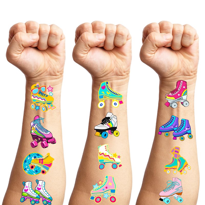 - Widely used: Roller Skate Skating Retro 80s 90s Disco Skateboard Temporary Tattoos pieces are suitable for many occasions such as birthday party supplies, party decorations, party favors, party bags, DIY decorations, pool and the beach or gift. Temporary tattoos are the best party favors and goodie bags fillers ever for any kind of celebration!