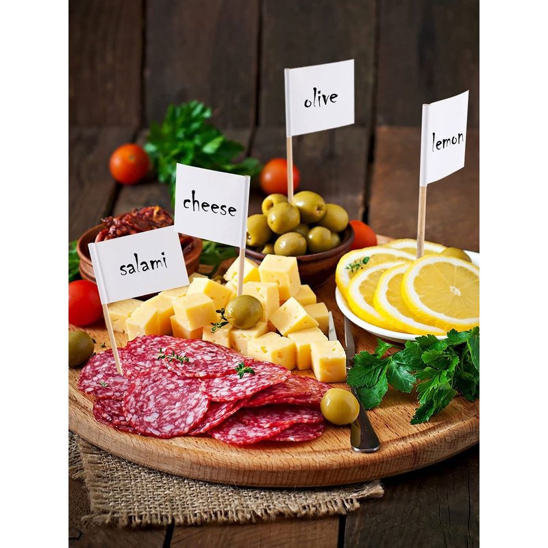 - Application: you can use these blank flags to decorate your delicious food such as labeling cheese plate, appetizers, meat, mini snacks, dinner item, drinks, etc.
