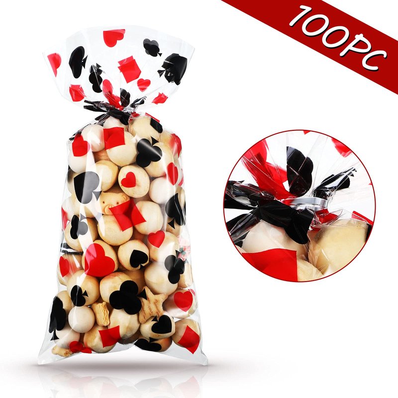 - Amount of packaging: you will receive 100 pieces poker theme cellophane treat bags, double-sided printed with black and red color poker elements, come with 100 pieces silver twist ties, enough quantity for your casino theme party food and gift packing