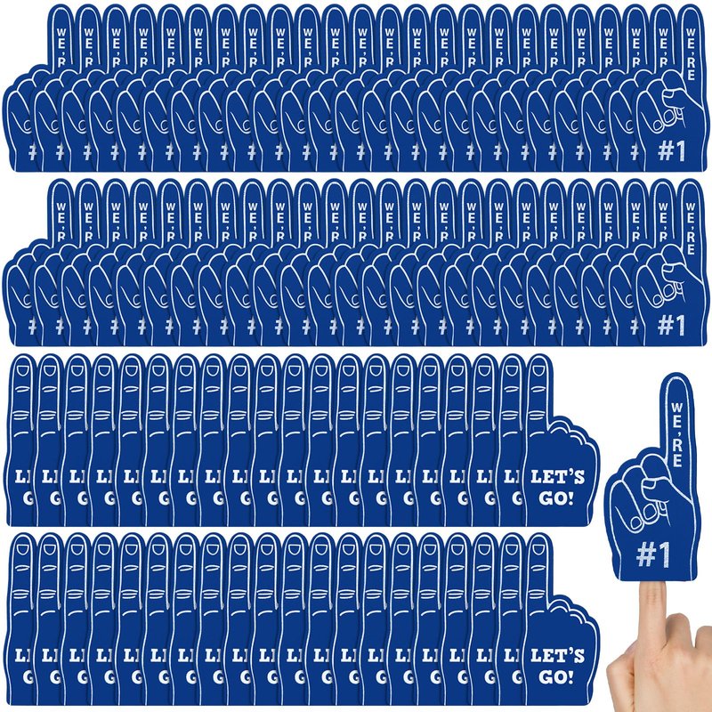 Features: These mini number 1 foam hand is ideal choice for people to cheer for your favorite team, it is mini but bright, which can be fitted your finger well without slipping, which can give confidence to the players involved.Sports foam fingers come with enough quantities that can meet the whole family, cheerleaders, and other groups to use, they are lightweight and can be applied as hand photo props. Specifications: Main color: navy blueSize: approx. 2.36 x 5.51 inches/ 6 x 14 cmMain material: EVA foamPackage includes: 100 x Mini foam fingersWarm notes: Please allow slight deviation due to manual measurement. Please allow slight color differences due to different monitors.