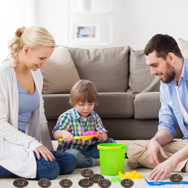 - Quality Materials : They Are Made Of High-Quality Plastic. It Features An Embossed Surface With The Treasure Chest Sign, And Each gold pirate coin has an embossed pirate picture. Not Easy To Fade, Not Easy To Deform, Use These Coins As Party Favors Or Prizes