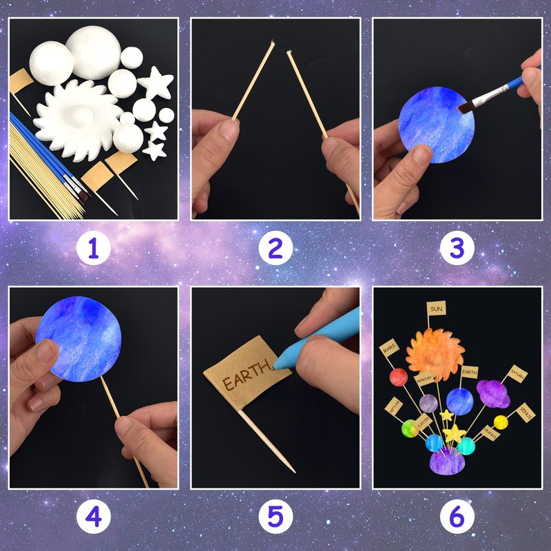 - Package includes: you will receive a solar system model foam ball kit, which includes 30 mixed-size polystyrene balls, 40 toothpick flags, 27 bamboo sticks and 3 paintbrushes that you can use to create your own model of the solar system, note:we do not supply paint, please prepare your own paint