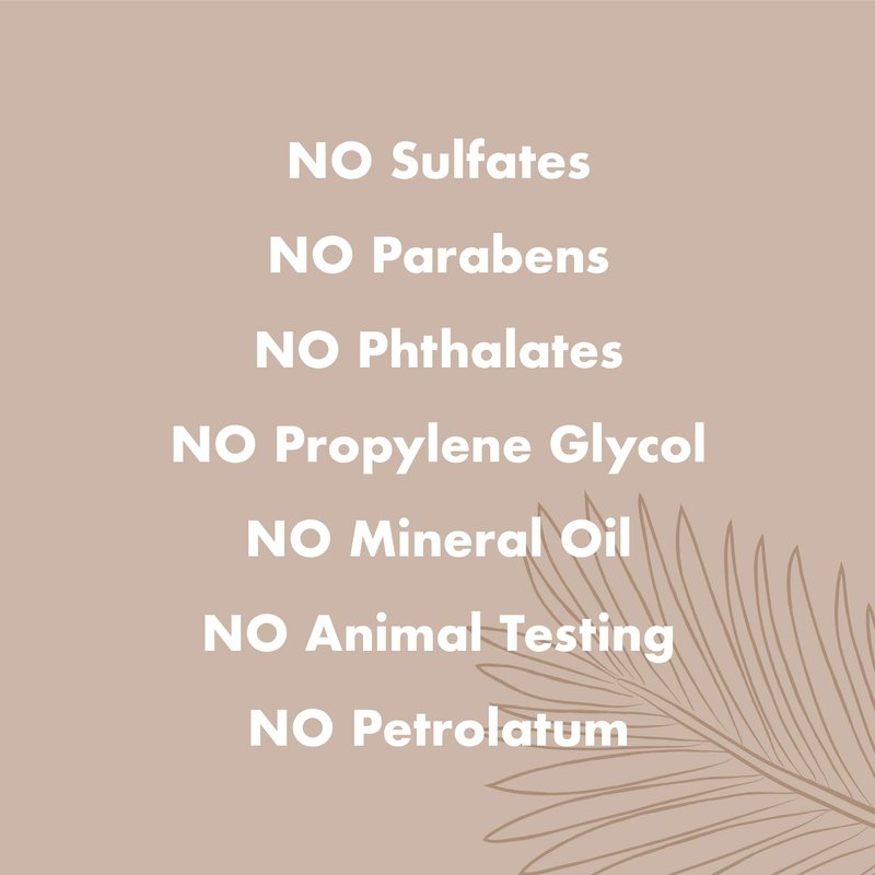 - No List: No sulfates, no parabens, no phthalates, no propylene glycol, no mineral oil, no animal testing and no petroleum