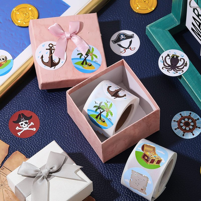 1000 Pieces Pirate Stickers Fun Pirate Themed Stickers Assorted Pirate Roll Stickers Pirate Wall Decals Pirate Birthday Party Favor Stickers for Girls Boys