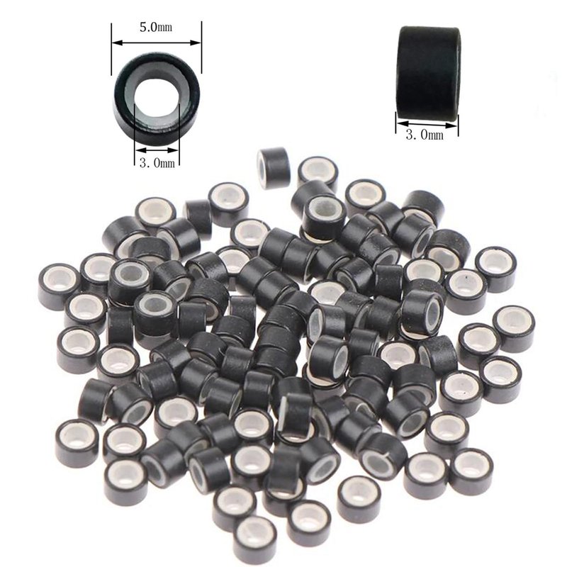 1000 Silicone Micro Link Rings 5mm Lined Beads Deadlocks for Hair Extensions Tool (1000Pcs(Pack of 1) (1000Pcs, Black)