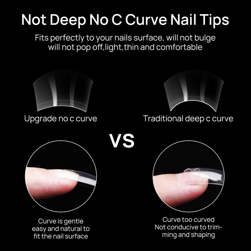 No C Curve Nail Tips Square Nail Tips 700pcs Nails Tips XXL Flat Nail Tips Clear Straight Nail Tips——Come and keep up with the fashion trend of long nails! Here are some steps for using them: 1. Prepare your nails: Before applying the no c curve nail tips, make sure your nails are clean and dry. Sand your nails and trimming the cuticlesuticle areas of your nail. 2. Select your desired no c curve nail tips: The no c curve nail tips come in a variety of sizes and shapes to fit different nail sizes and styles. Choose the tip that best fits your natural nail and aesthetic preferences. 3. Apply glue: Apply a small amount of nail glue to the underside of the no c curve nail tips, taking care not to use too much glue as this can cause the tip to slide around or lift. 4. Place the no c curve nail tips on your natural nail: Press the No c curve nail tips firmly onto your natural nail, starting from the base of your nail and working your way to the tip. Hold the tip in place for a few seconds to ensure it adheres properly. 5. Trim and shape no c curve nail tips: Once the glue has dried, you can shape the no c curve nail tips to your desired length and shape using a nail file or clipper. 6. Apply polish and decorations: Now that your no c curve nail tips are securely in place, you can apply the no c curve nail tips and decorations to create your desired nail art design.