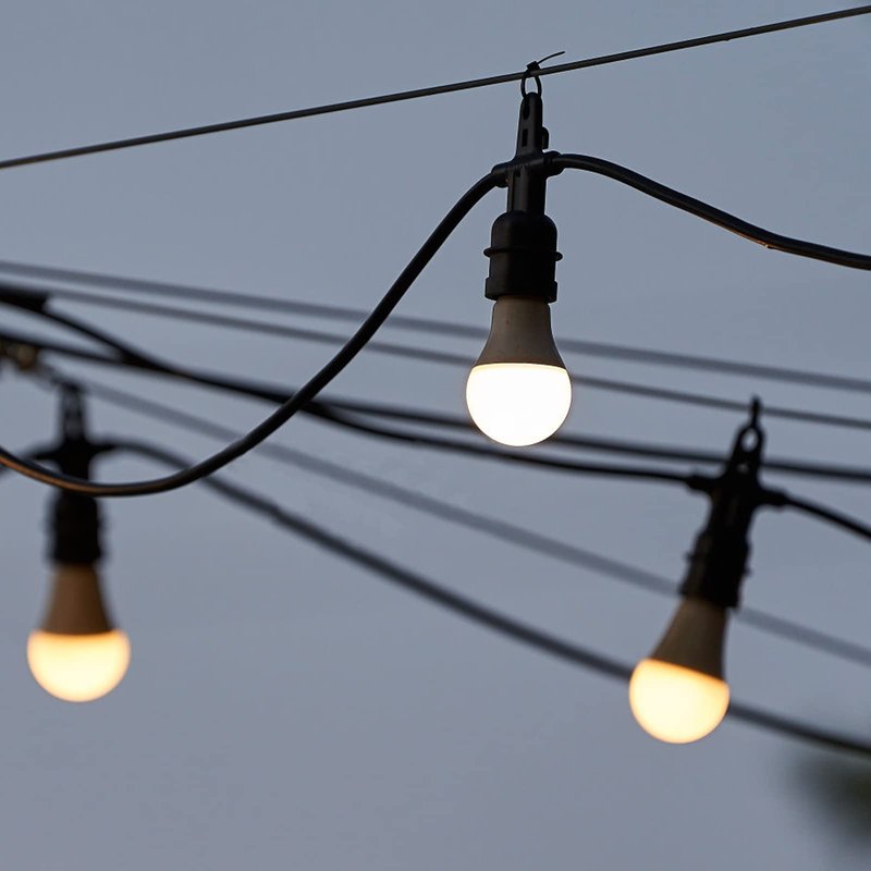- With the black vinyl coating, the guide wire for outdoor string lights has a nice smooth surface, anti-rust, anti-fade and sun protection to ensure a long service life. The stainless wire is adopted plastic reel to wind, easy to storage and use anytime.
