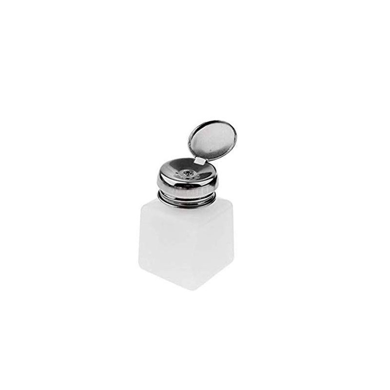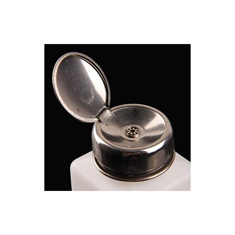100ML Metal Cap Push Down Empty Bottle Dispenser for Nail Polish Remover, Pump Dispensers Empty Plastic Bottle with Lock Pump Head for Lip Eye Makeup Remover (White)
