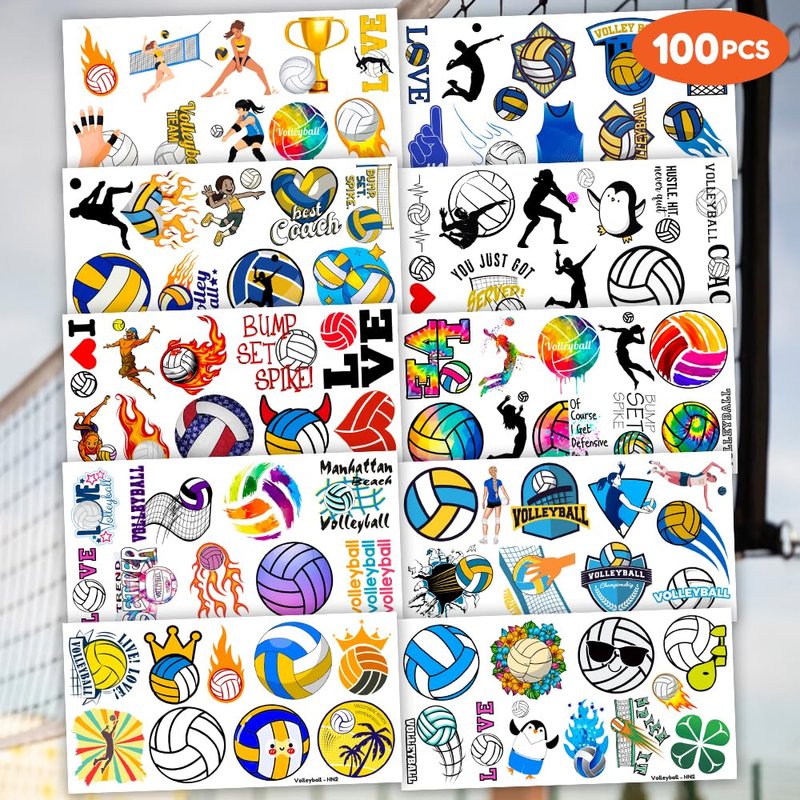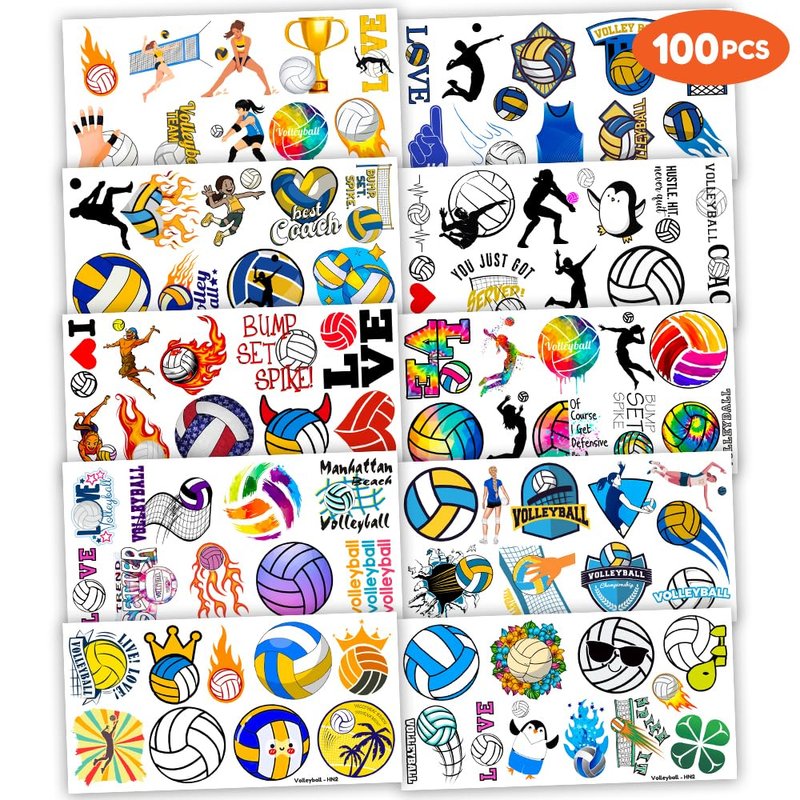 - Pattern rich: Cute Volleyball Cool Funny Summer Beach Sports Ball Temporary Tattoos for Kids include 10 Sheets 100 PCS, the size of each sheet is 6.1 * 3.1 inches. Having a variety of characteristics, shapes and vibrant colors can stimulate your children's imaginations and bring a creative atmosphere to your Volleyball Party.