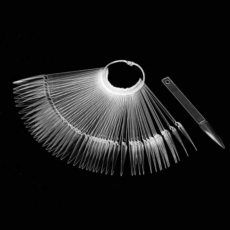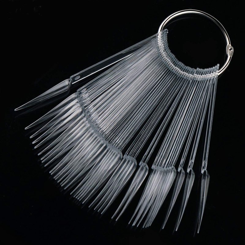 100pcs GOGOONLY Nail Display Sticks Transparent Stiletto Tips Nail Art Display Chart Fan Board Acrylic False Tips Practice Tool Nail Polish Sample Color Showcase With Ring (100 pcs - Clear)