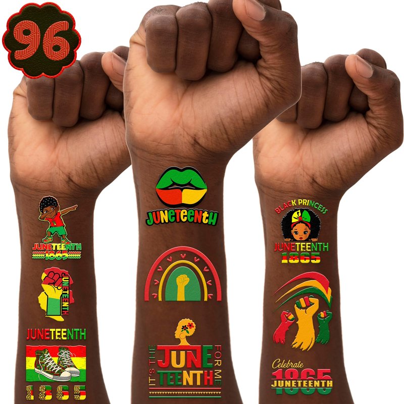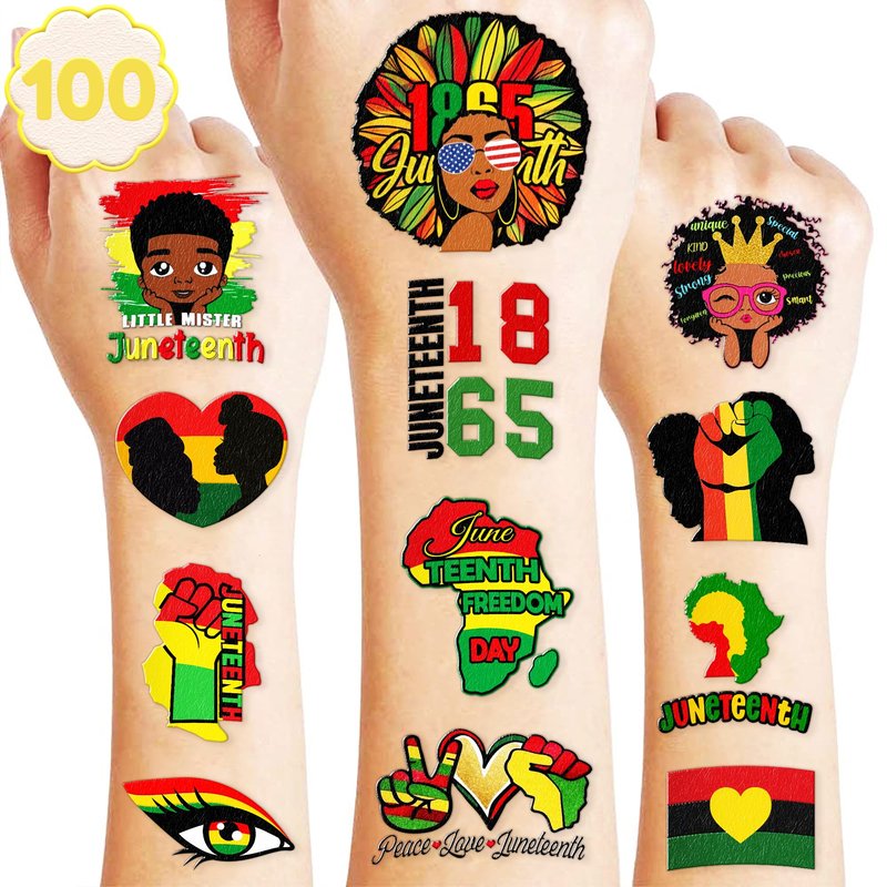 - 👨🏿【EXCELLENT GIFT IDEAS FOR JUNETEENTH CELEBRATION】: Juneteenth tattoos are a fantastic addition to your celebration decorations. They will bring joy to participants of all ages, making them ideal as party favors, school rewards, and unique small gifts. One size fits all, ensuring that everyone can join in the festive spirit. 🌟