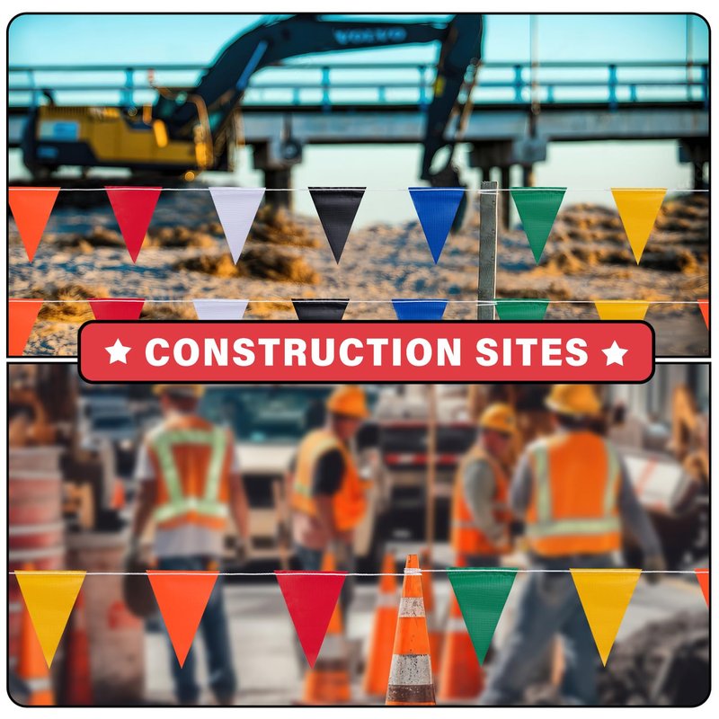 - Vibrant Visibility: Elevate safety with our pennant banner flags, meticulously designed for enduring outdoor visibility. Each flag adopts a bright fluorescent color with fade-resistant material, ensuring a vibrant and attention-grabbing display that stands the test of time