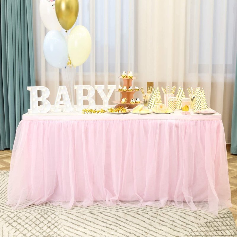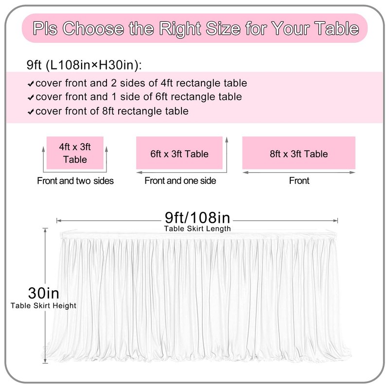 - ❤【MULTI SIZE OPTIONAL】NSSONBEN Pink tutu table skirt comes with 3 sizes: 2Yard/6ft (L72in×H30in); 3Yard/9ft (L108in×H30in); 4.5Yard/14ft (L168in×H30in).