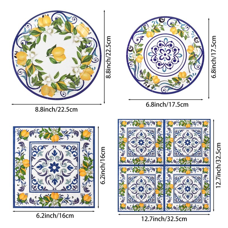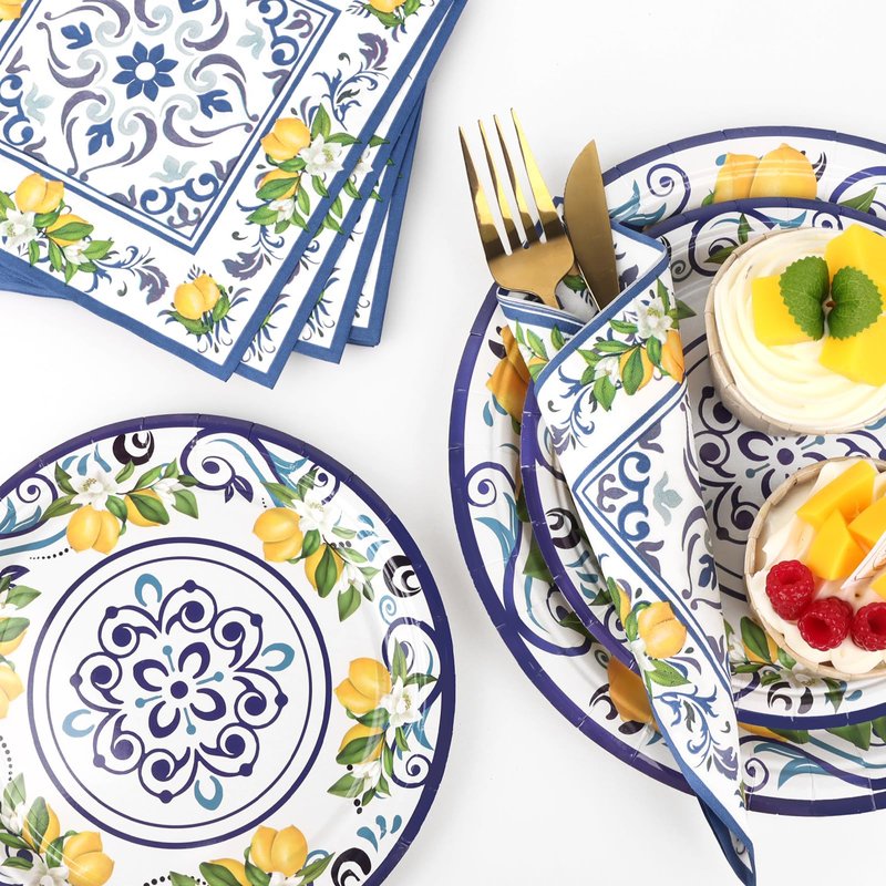 - Unique Pattern: Mediterranean Puri Lemon Masterpiece Party Tableware Set is designed with Capri Lemon and Blue Tile Pattern. Fill your party with lemon atmosphere and add a touch of cuteness and freshness to your party. If you want to throw a creative party, then you can't miss this birthday decorations set. This Italian summer party decorations set can be a wonderful experience for your kids and their friends