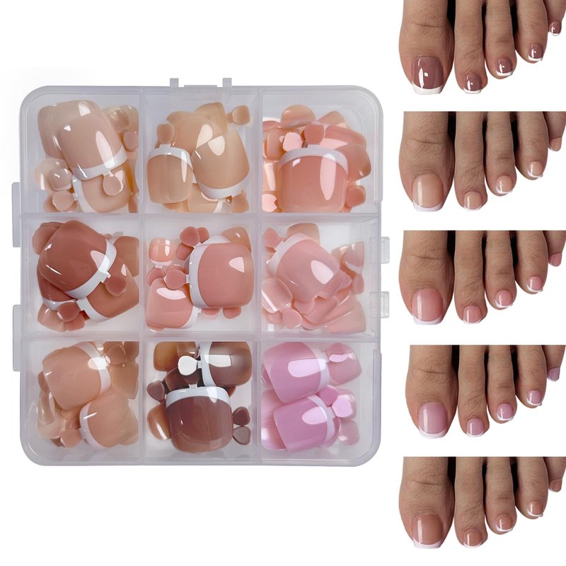 - French Toenail: Only 108pcs french tip toe nail tips are included. No accessories included.Upgraded 9 colors for toenails, gel x press on toenails are convenient for travelling or on the go. French gel x toe fake nails with nail glue have straight sides creating a clean and angular look,french gel x tips toenails are ideal choice for nail starter and professional nail techs