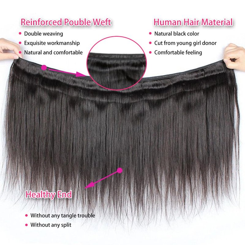 - 💝💝【Straight Bundles Human Hair Material】: Beauty Queen Brazilian Virgin Straight Human Hair Bundles, 100% Unprocessed Brazilian Bundles Human Hair Straight Hair, Cut from Young Girls, Clean and Healthy, No Synthetic Or Animal Hair Mixed, No Smell, No Chemical Process.