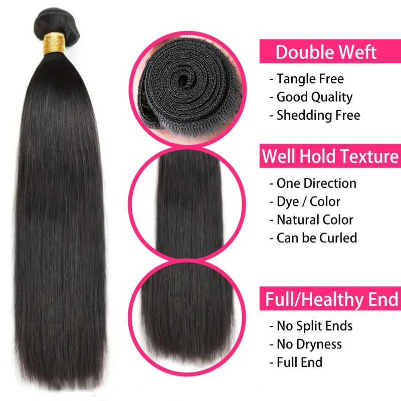 - 💝💝【Straight Human Hair Bundles Color】: Straight Bundles Human Hair is Natural Black Color, Jet Black Can Do, Can Be Dyed, Bleached, Curled, Quick Weave and Restyled as Your Own Hair. You Can Sew in All The Color Wigs, Selling by 100% Human Hair Factory Directly.