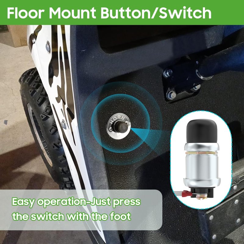 1.This golf cart horn with floor Mount Button, Press by your foot when needed, easy operation