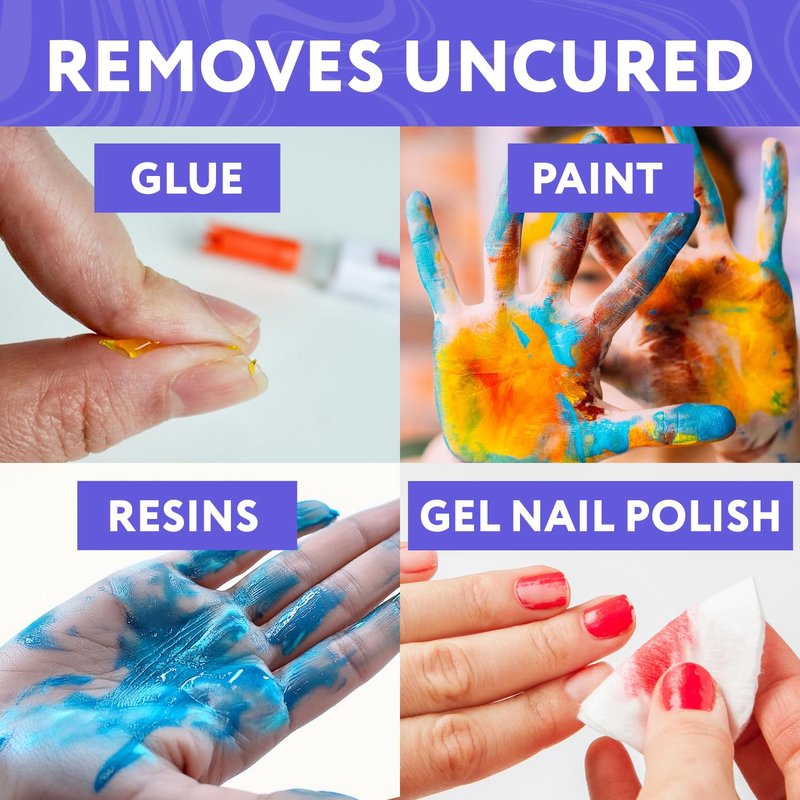 - Versatile & Effective: This multi-surface epoxy cleaner is perfect for cleaning skin, tools, resin molds, work surfaces, and more! It tackles UNCURED resin, glue, paint, epoxy resin, UV resin and even wet GEL nail polish. Its gentle cleaning nature removes most art mediums easily without damaging surfaces or finishes, helping extend the life of your tools and keeping them in pristine condition. An essential addition to any DIY crafter's or resin artist's toolkit