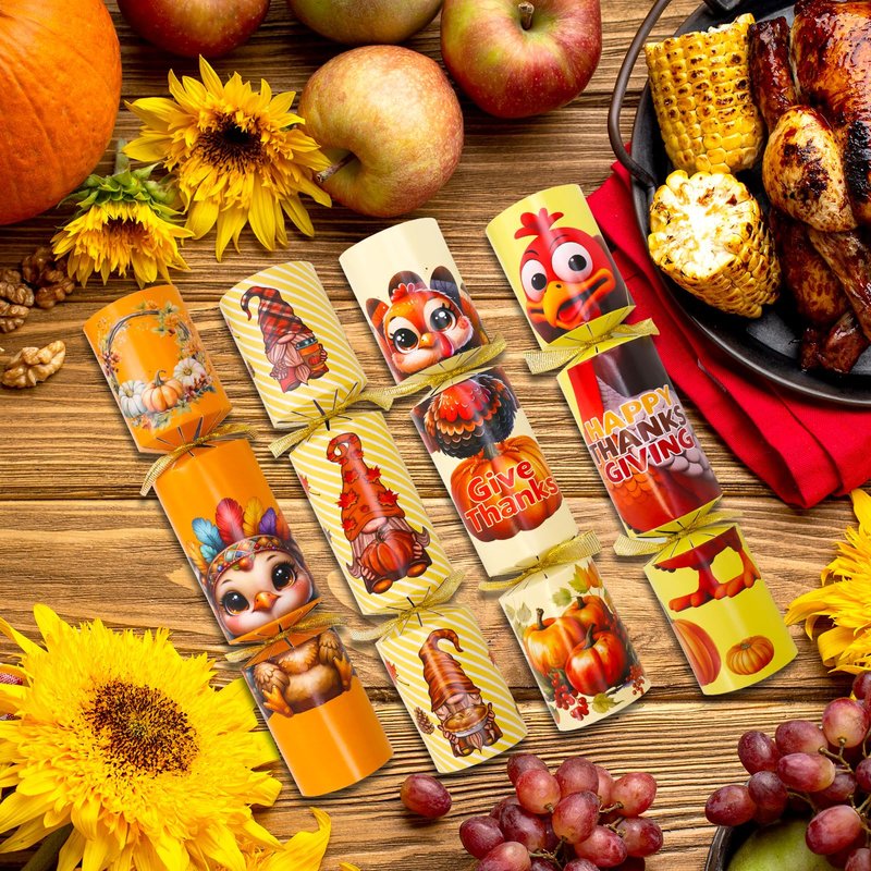 - Thanksgiving crackers are great as Thanksgiving fall party table favor games,Thanksgiving family activities prize, fall holiday dinner games traditions