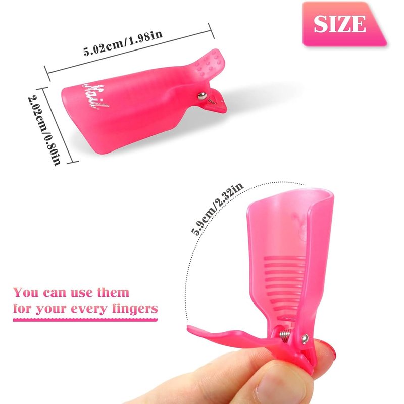 - Suitable Size: The sizes of these nail polish remover clips are about 5.02x2.02 cm/1.97x0.79 inch. The suitable sizes fix your fingers and the nail polish remover cotton pads well,you can use them for your every fingers. No matter your finger size, our nail remover clips are perfect for all finger shapes and sizes. You can freely use your hands during the process as they won't fall off.