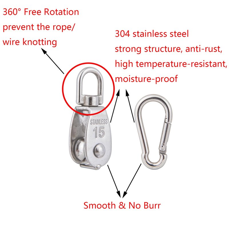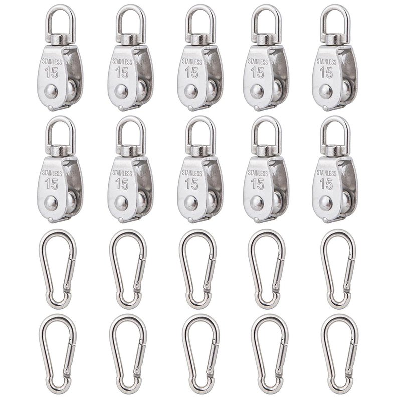 - ▶Packaging Includes◀: 10Pcs M15 stainless steel single pulley, 10Pcs stainless steel spring snap hook.