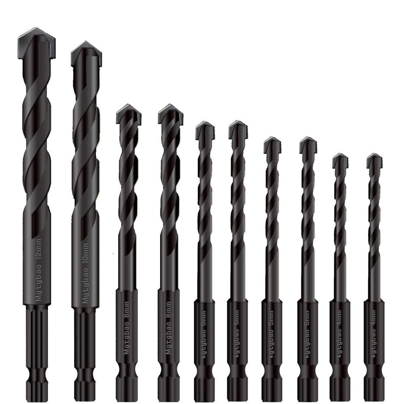 10pcs Black Concrete Drill Bit Set, Mgtgbao Tile Drill Bits Carbide Tip for Glass, Brick, Tile, Concrete, Plastic,Ceramic and Wood with Size 4mm,5mm,6mm,8mm,8mm,10mm,12mm