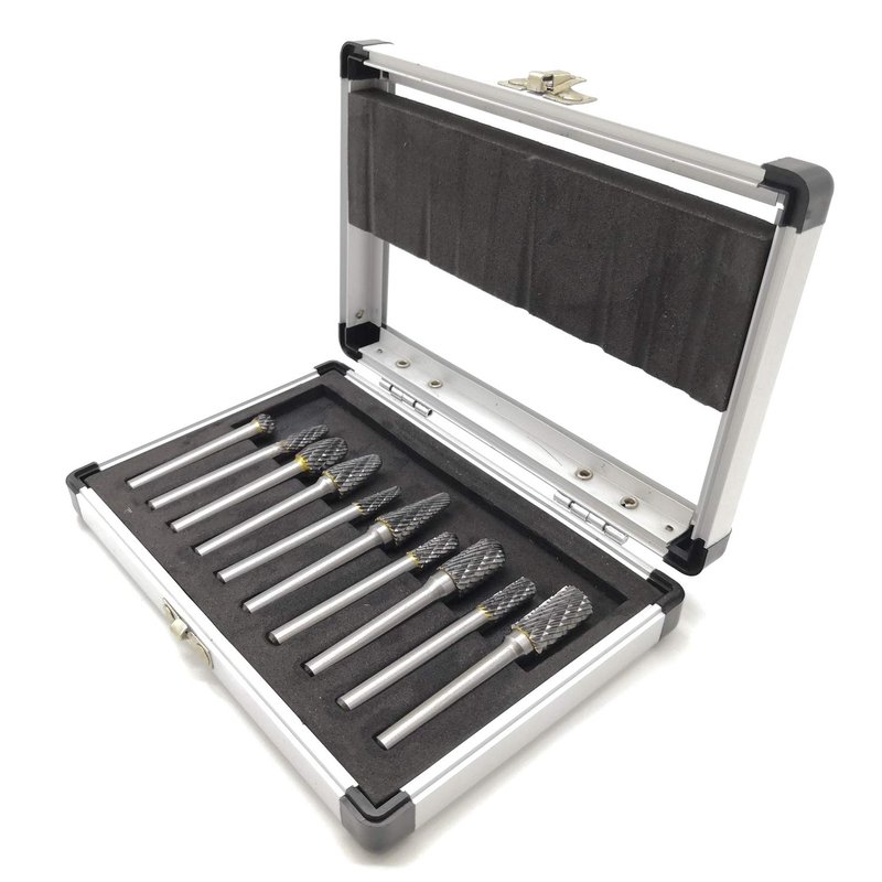 10 Piece Assorted Double Cut Die Grinder Bits With 1/4" Shank, Packed with a nice case for safety storage and protection