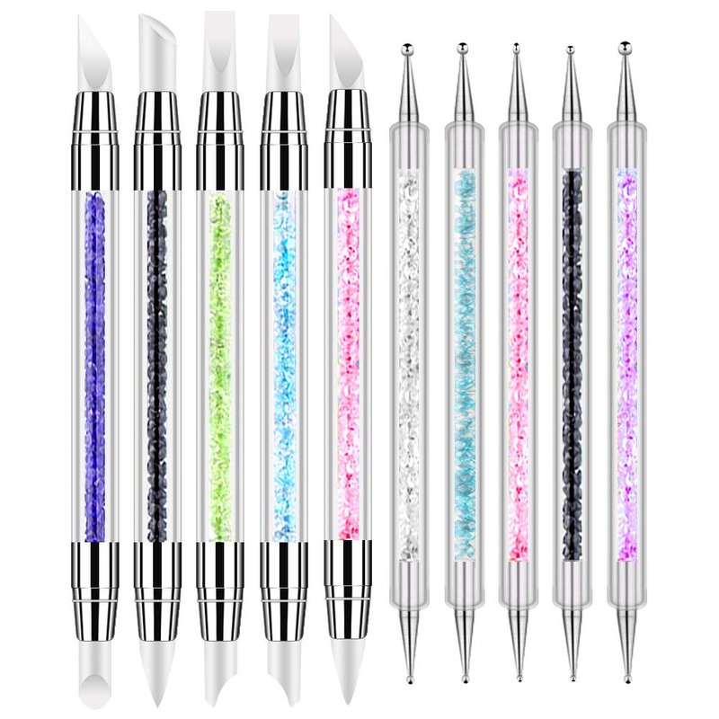 - DUAL-HEADS DESIGN: The gel carving pen dotting pen set easy to use,dual-head design of each pen that you can switch more easy.10 pieces and 10 different tips, 5 metal ball tips for dotting and 5 silicone brush tips