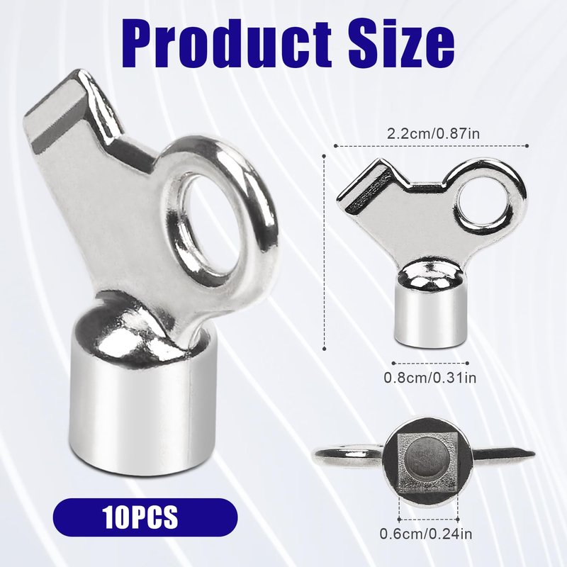 - Package Content: You will get 10 pieces of silver radiator bleed valve keys with square holes. In case of loss or damage, you always have spare parts on hand. For larger projects, having several keys on hand can increase efficiency by reducing time spent searching for misplaced keys. Sufficient quantity will meet your daily use.