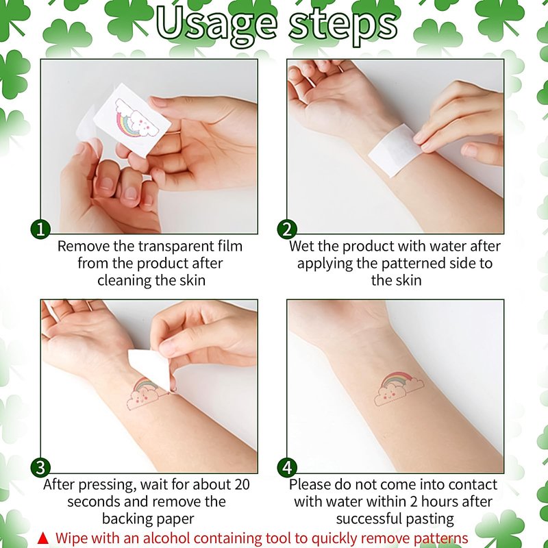 - St. Patrick's Day Set: You will receive 10 lucky green Saint Patrick's Day face tattoo stickers with funny design! 10 sheets of false tattoos watercolour shamrocks patterns to meet your various design needs.