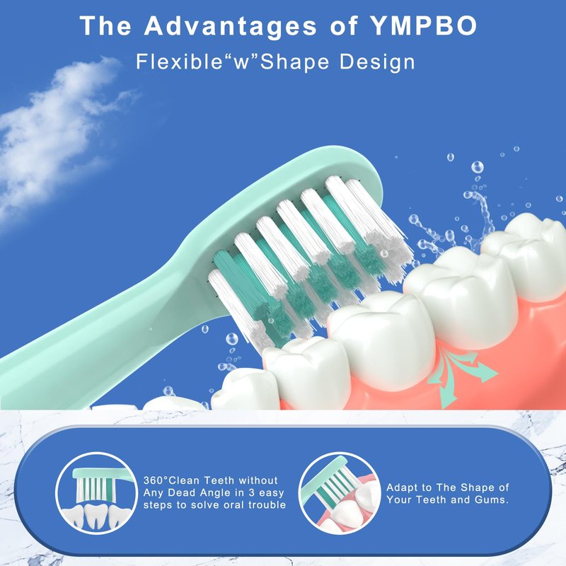 - 【Excellent Quality】: YMPBO toothbrush head is made of high-quality DuPont food-grade material with moderate hardness and soft texture, which is suitable for American children. Advanced implant technology avoids bristle shedding, the brush head is sturdy and wear-resistant, not easy to break.