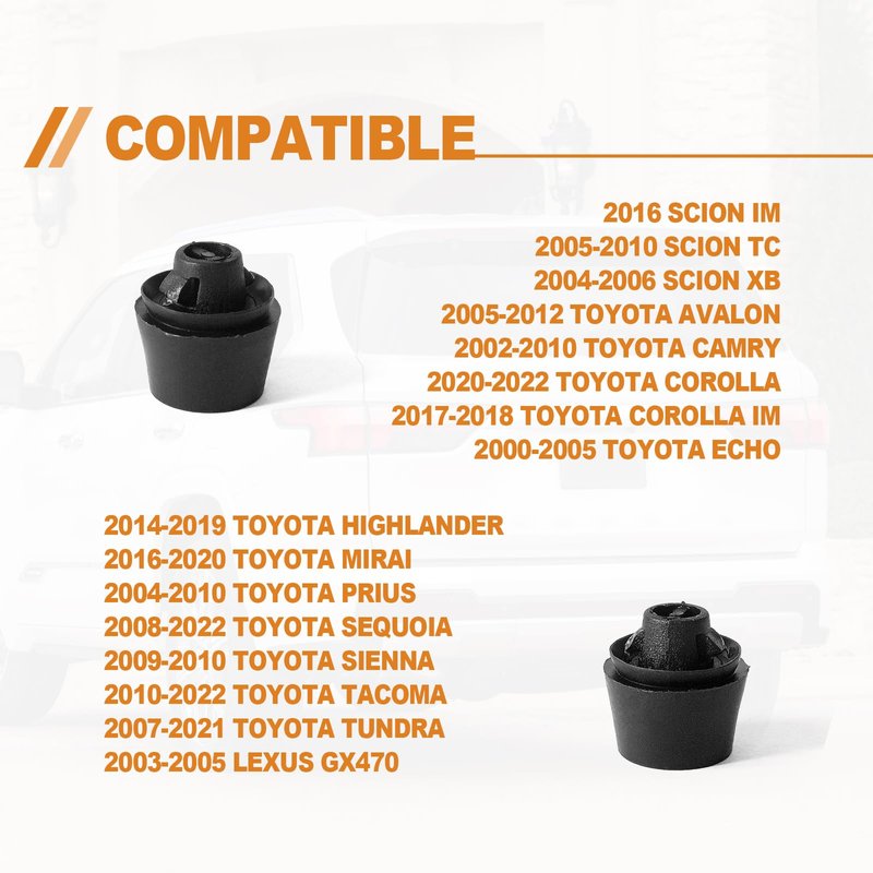 - Compatible with Toyota 2016 Scion iM; 2005-2010 Scion tC; 2004-2006 Scion xB; 2005-2012 Toyota Avalon; 2002-2010 Toyota Camry; 2020-2022 Toyota Corolla; 2017-2018 Toyota Corolla iM; 2000-2005 Toyota Echo; 2014-2019 Toyota Highlander; 2016-2020 Toyota Mirai; 2004-2010 Toyota Prius; 2008-2022 Toyota Sequoia; 2009-2010 Toyota Sienna; 2010-2022 Toyota Tacoma; 2007-2021 Toyota Tundra; 2003-2005 Lexus GX470.