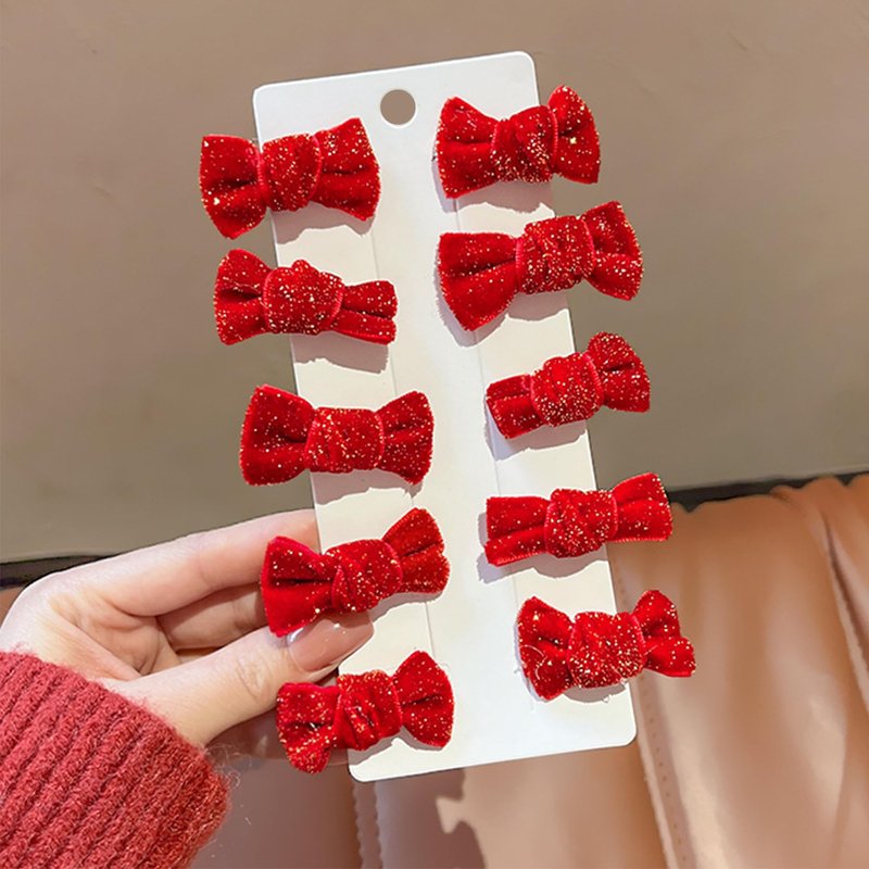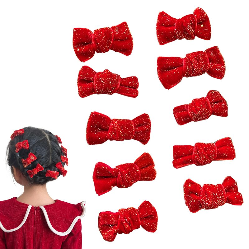 - Adorable Red Velvet Bows Set: This 10 pieces set features vibrant red bows adorned with a cute butterfly design, adding a touch of charm to any outfit.