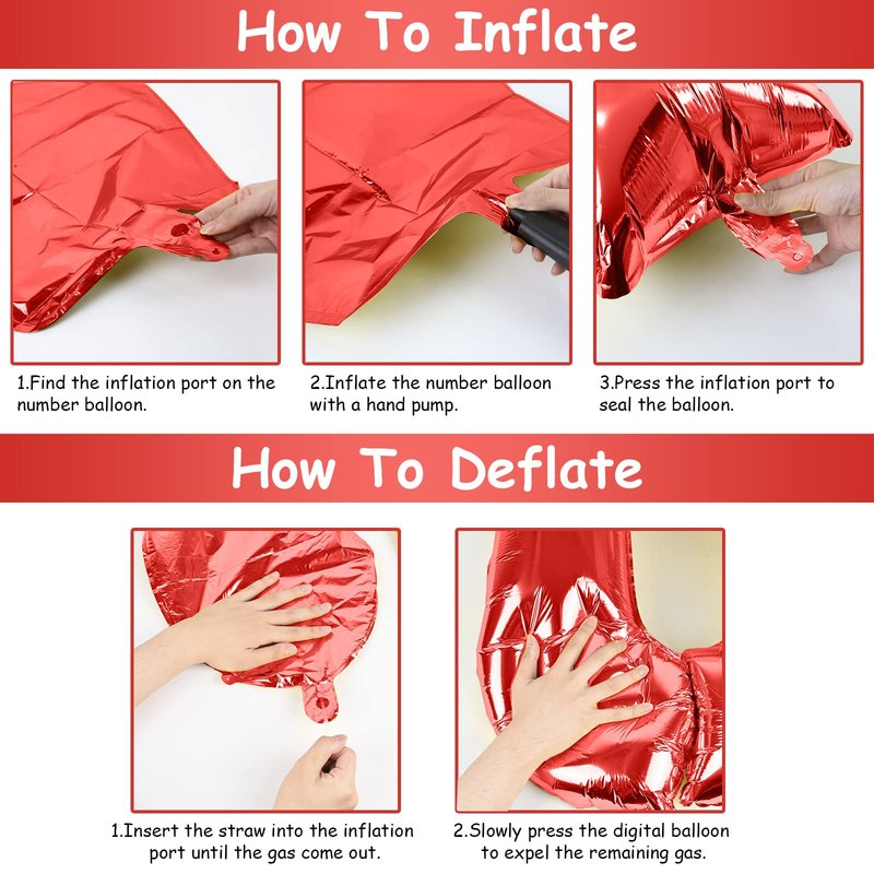 - 💕 Easy to Inflate 💕 - The big number foil balloons have self-sealing valve does not need to be knotted for easy inflation and deflation. It can be inflated with air or helium. When filled with helium, the balloons can float in the air; after filling, press the valve of the digital balloon to seal it. It can be reused. Do not throw away after use!