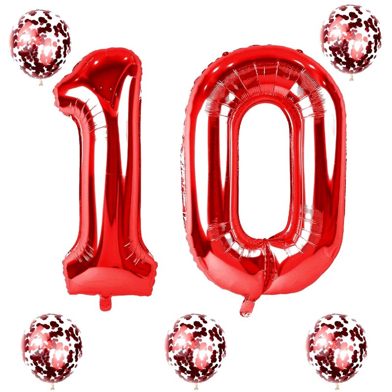 - 💕 Red Number 10 Balloons Set 💕 - You will get 2pcs 40 inch mylar foil number balloons (number 1 + number 0), 5pcs red confetti latex balloons, 1pc straw and 1pc balloon ribbon. Perfect for decorating 10th or 1st birthday party.