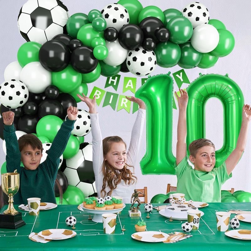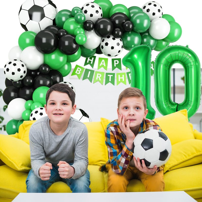 - GREAT FOR SOCCER THEMED CELEBRATIONS:This soccer balloon garland kit is perfect for 10th birthday parties for boys and girls, soccer-themed events, baby showers, sports celebrations, and more. Perfect for soccer birthday decorations, these green and white balloons will make your kid's 10th birthday party decorations vibrant and fun.