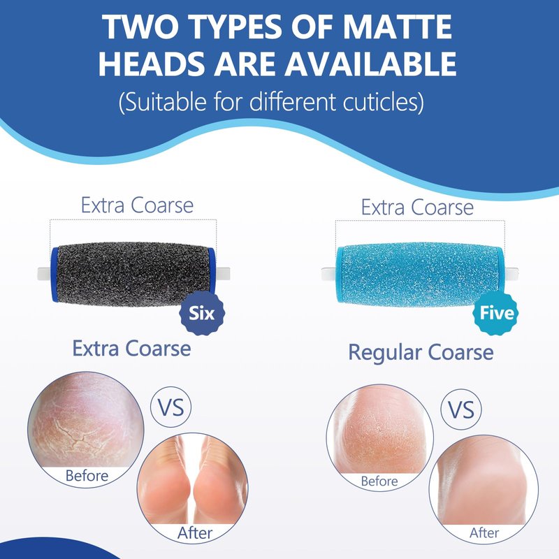 - Top Grade Materials - 11 Pcs mope pedi perfect electric foot file roller head refills, includes 5 Regular and 6 Extra Coarse roller heads, with diamond crystals to effortlessly & effectively remove rough, cracked, dry and very hard skin. For use on wet & dry skin.