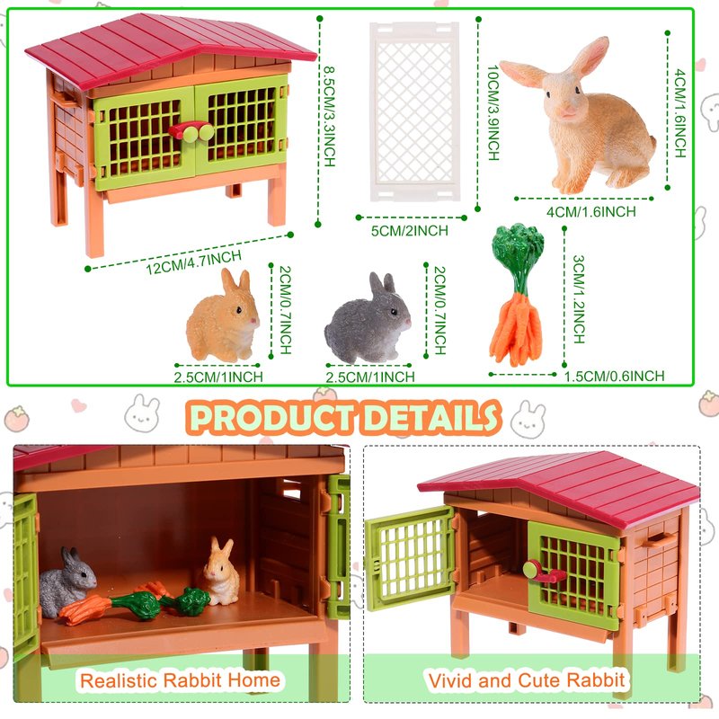 - Educational Toy Set: children will enjoy hours of imaginative play with the realistic animal bunny hutch playsets; Parents can tell their children about farm animals or the happy life of farm animal families, and play games with them, which will improve the quality of parents and cultivate the creativity of children while enjoying family time