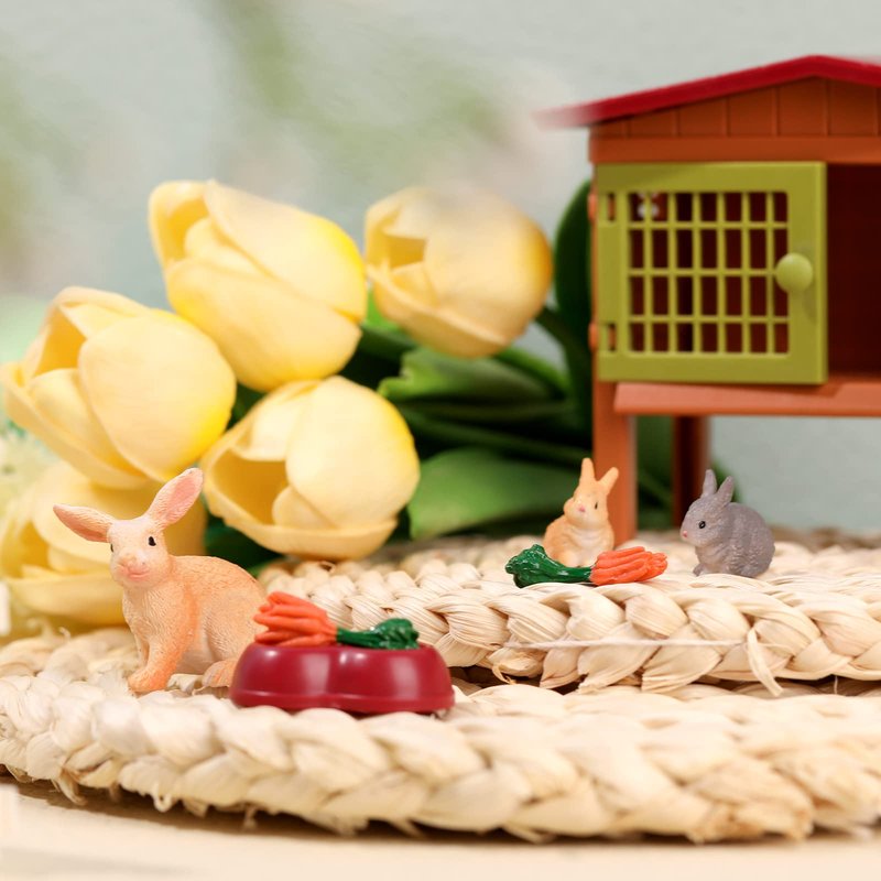 - Beautifully Crafted and Detailed: the bunny hutch toy set is very elaborate and delicate, which is hand painted and sculpted by experts to ensure authenticity; The creative texture and rich painting details bring the bunny house set to life