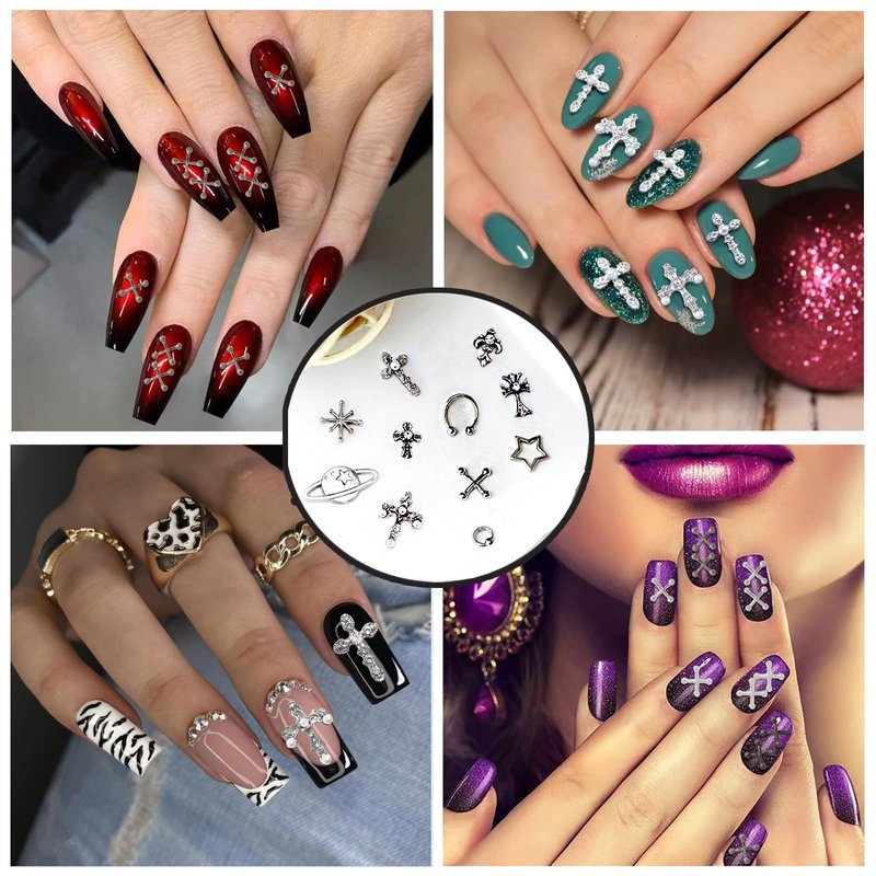 - 【Rich Styles and High Quality】 These nail charms include 11 styles including stars, planet, cross, punk, etc.Each styles have 10 pieces.The nail charms are made of high quality alloy and rhinestones, silver nail charms grain clarity, not easy to fade. You can apply these sparkling nail charms to decorate your nails.
