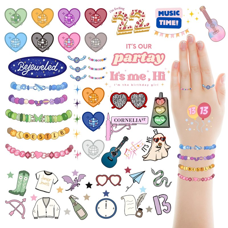 - 【Ideal for Parties and Concert】Perfect for girl party and eras concert tour outfit! The lucky number 13 tattoo merch is great for party decorations,birthday decorations,party favors, concert outfit, and music lover fan gift.