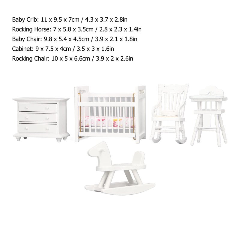 1:12 Dollhouse Baby Furniture Model Set Miniature Baby Crib Rocking Horse Chair Cabinet Decoration Accessories