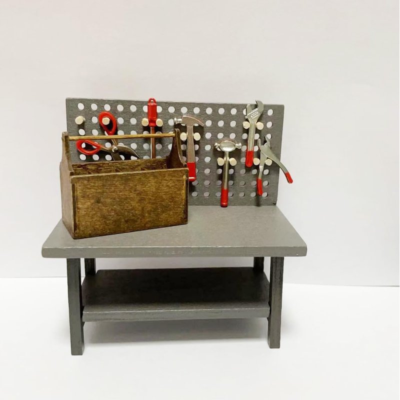 - Dollhouse Miniature Workbench with Tools accessories . This tiny replica is a great accessory to your diorama or miniature display!Complete your scaled scene with this Dollhouse Miniature Workbench with Tools!