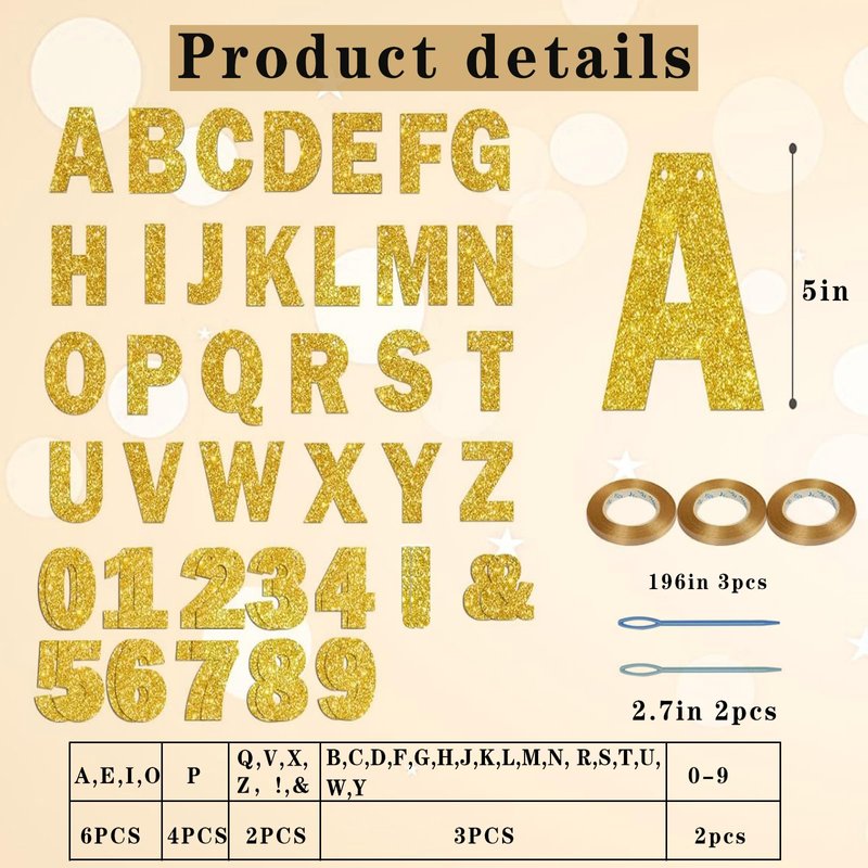 116 Pcs DIY Glitter Customizable Banner Kit Custom Banner Including 111 Letters and Numbers 3 Rope and 2 Threading Device for Personalized Decor for Graduation Decoration Birthday Banner (Golden)